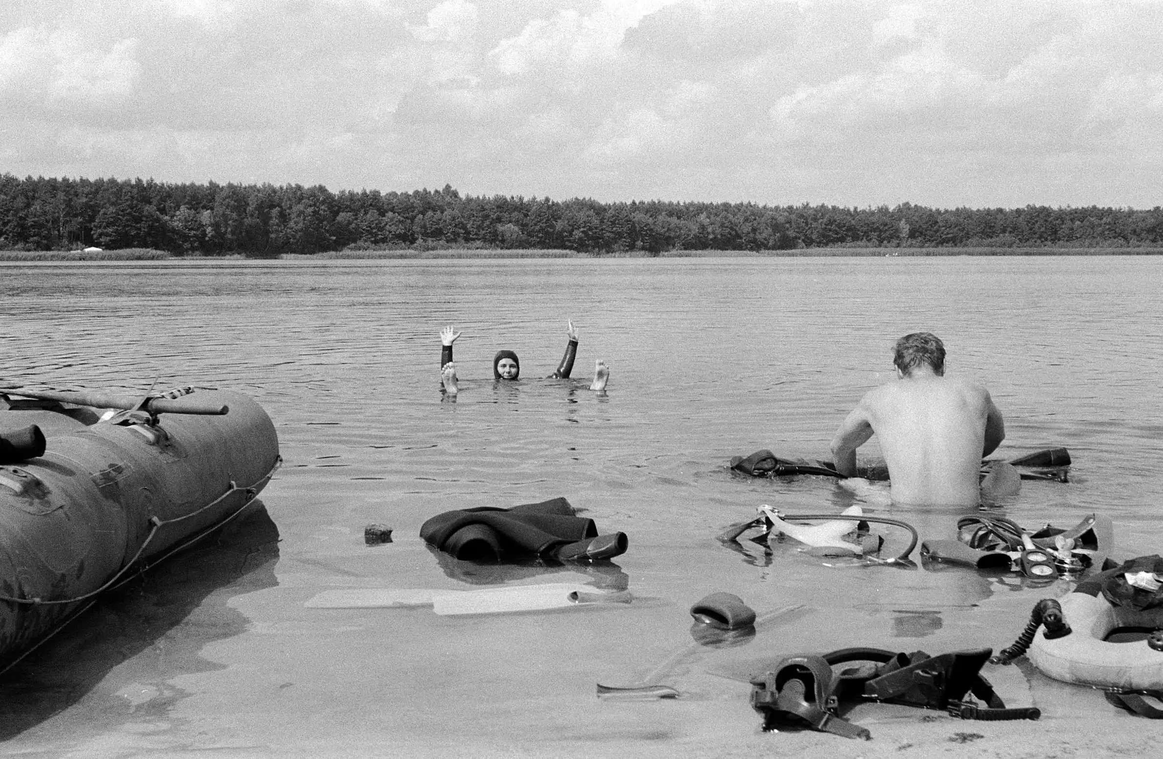 Wpis w budowie. Relac­ja z obozu nurkowego Łodzkiego Klubu Płet­wonurków LOK “MOANA” w Trębach nad jez. Budzisławskim w lipcu 1997r. Powiat konińs­ki, wojew­ództ­wo wielkopol­skie. W obozie uczest­niczyłem aby real­i­zować tzw. nurkowa­nia międzystop­niowe, czyli prak­tykę nurkową przed ostate­cznym szkole­niem na II stopień płet­wonur­ka, na kole­jnym obozie, według norm CMAS, które wów­czas stosowała Komis­ja Dzi­ałal­noś­ci Pod­wod­nej  ZG LOK. Byłem przyję­ty jak “swój” przez społeczność Klubu MOANA i doskonale czułem się wśród koleżanek i kolegów. Nurkowa­nia było tak wiele, jak sobie wymarzyłem, to znaczy mnóst­wo. Atmos­fera wspani­ała,  a wśród kadry obo­zowej auto­ry­te­ty. W jeziorze Budzisławskim wys­tępowała rewela­cyj­na prze­jrzys­tosć wody, mierzyliśmy ją  improw­iz­owanym krążkiem Sec­chiego i zwykłą linką o znanej dłu­goś­ci między płet­wonurka­mi. Nurkowal­iśmy na maksy­mal­ną znalezioną głębokość 33m. Było tam oczy­wiś­cie ciem­no i zim­no, ale cieka­wość, fra­j­da i zal­icze­nie ćwiczenia są ważniejsze. Wykony­wal­is­my też nurkowa­nia głębokoś­ciowe na zatrzy­manym odd­echu, opuszcza­jąc się za opada­ja­cym obciążnikiem wzdłuż liny poręc­zowej. Na dole czuwał płet­wonurek w apara­cie odd­e­chowym. Było to zain­spirowane filmem “Wiel­ki Błęk­it”.
