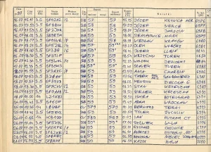 Powyżej prezen­tu­ję skany stron z dzi­en­ni­ka mojej radiostacji, w którym zapisy­wałem łącznoś­ci przeprowadzane pod­czas obozu. Poniżej zna­j­du­ją się numery łącznoś­ci (QSO) naw­iązanych ze stac­ja­mi uczest­niczą­cy­mi w akcji powodziowej: